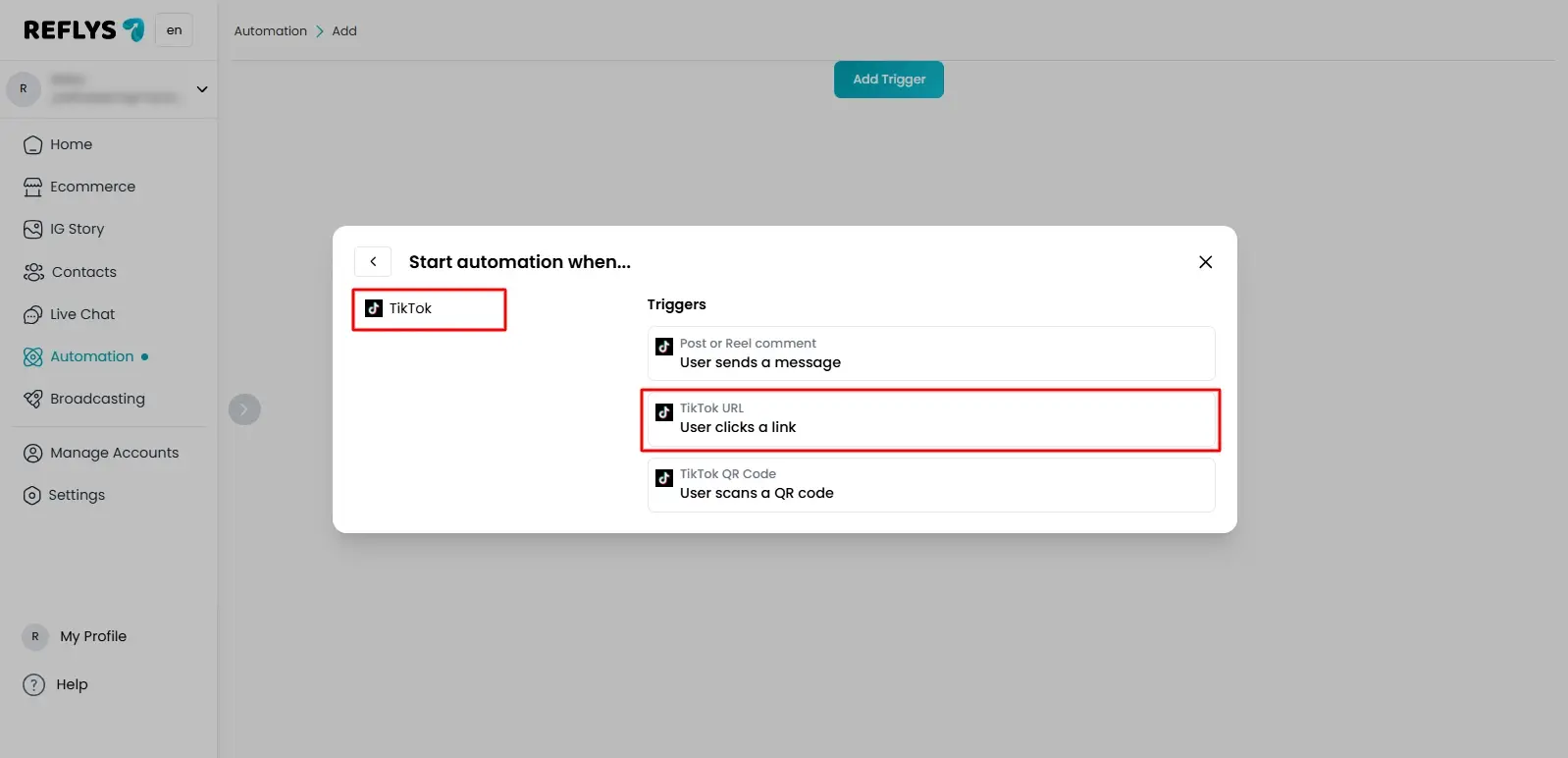 How to Set TikTok Ref URL Trigger With Reflys?