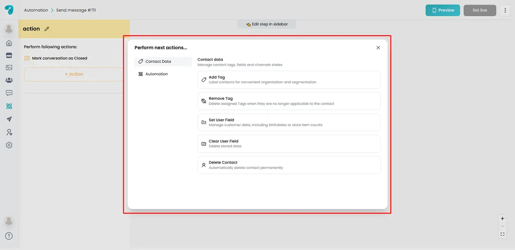 - Running Instagram automation? Use actions to tag new followers as “Leads” and mark their conversations open for follow-up.