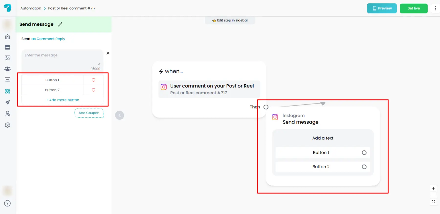 6 .Add Buttons to Cards (Instagram & Messenger only)