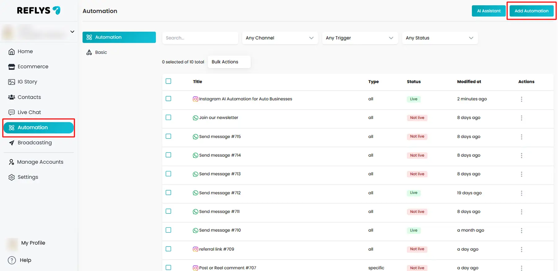 - Click + Add Automation.