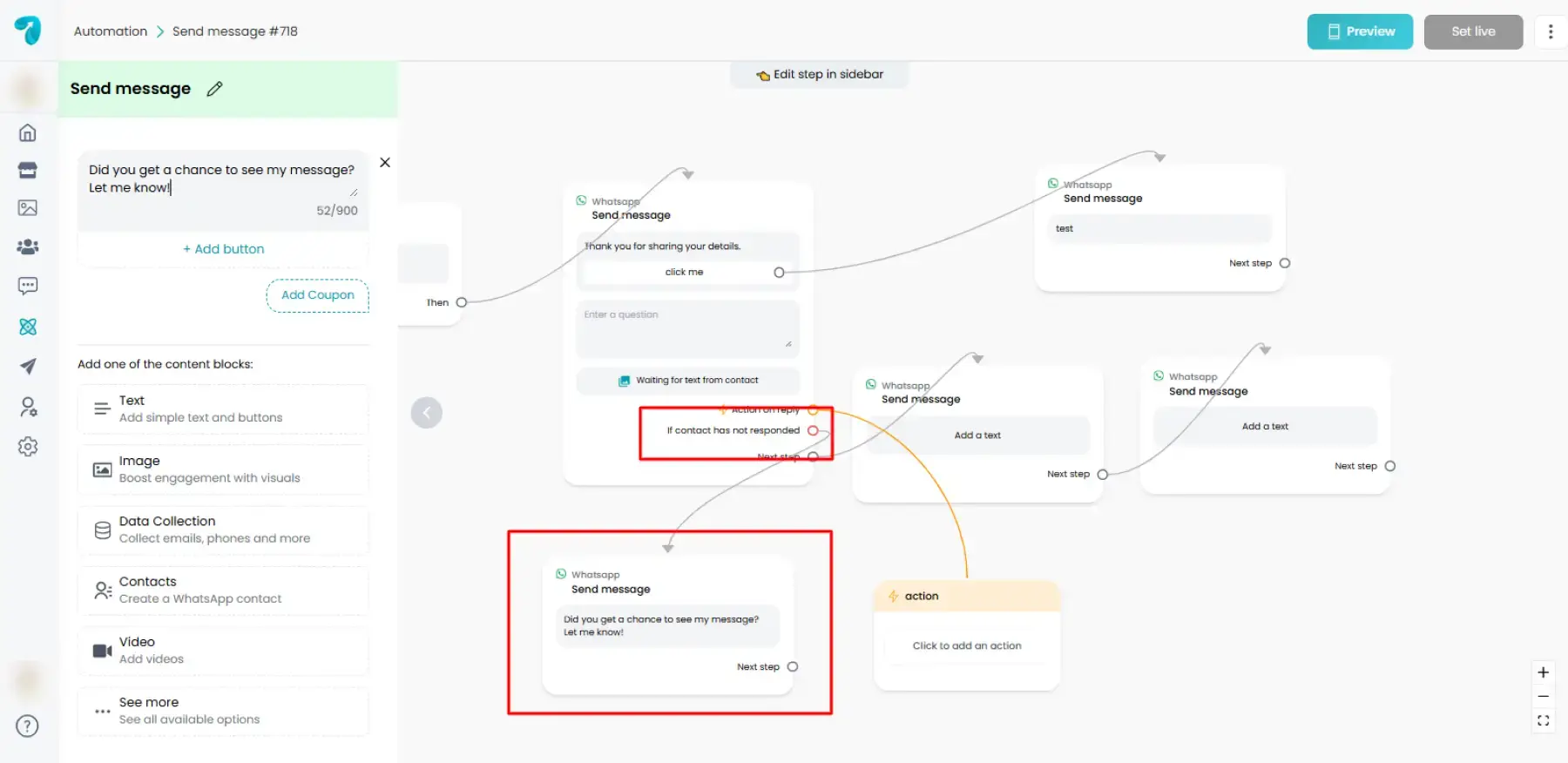 In automation flow, you can also reminder user after no response setting to keep follow up of users who don’t reply.