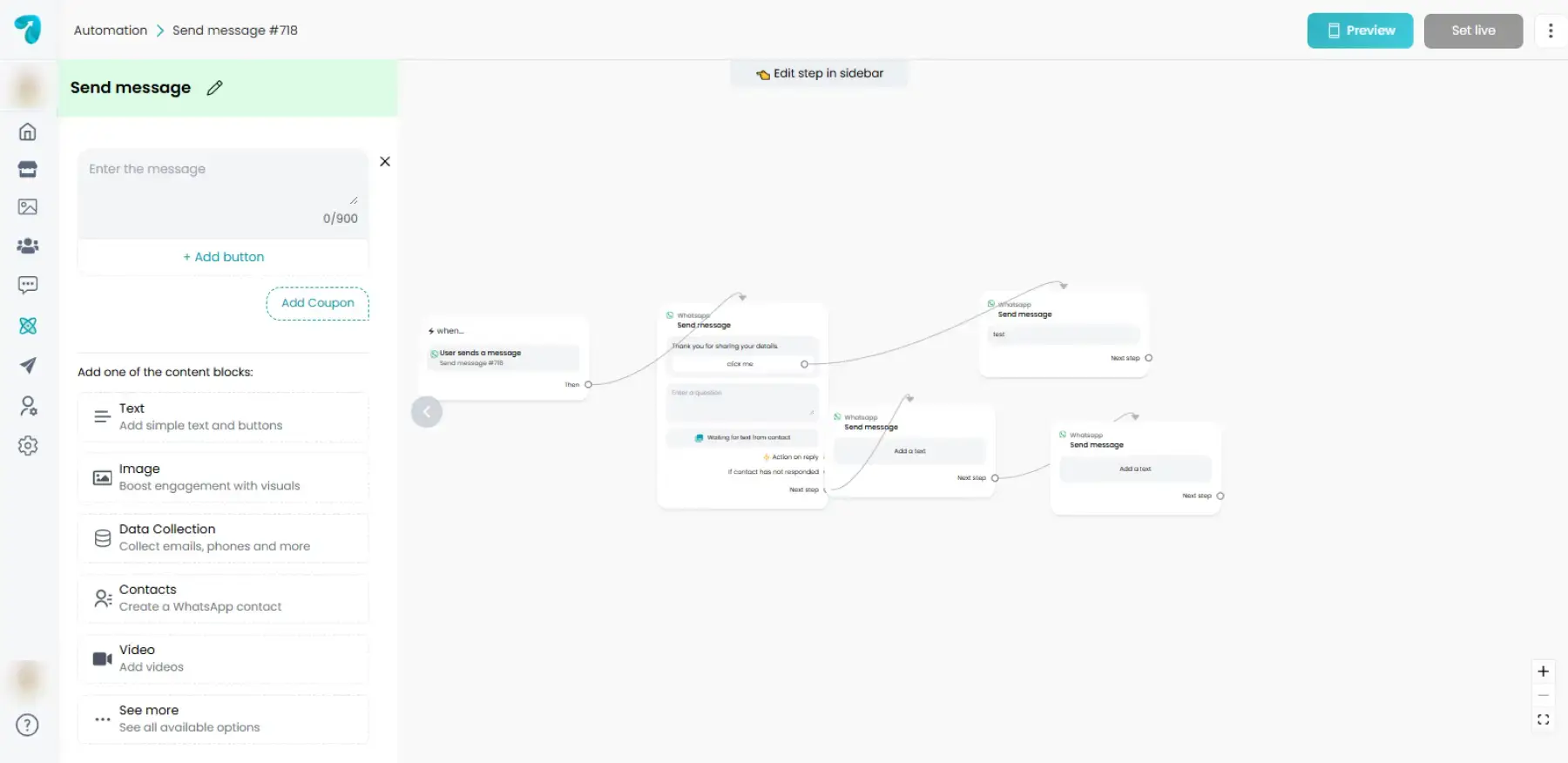 For example: If you ask “What’s your phone number?” you can save the reply into a field called Phone and then use it later to send a WhatsApp message.